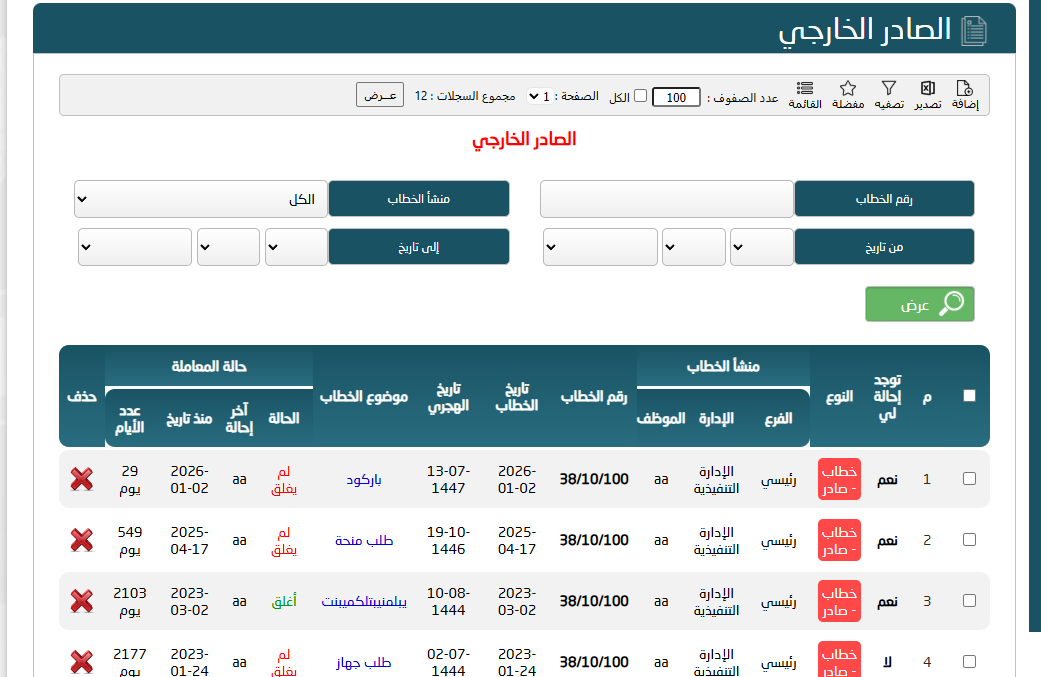 من اضافة معاملات او ارشفتها او إحالاتها او متابعها او التذكير بها