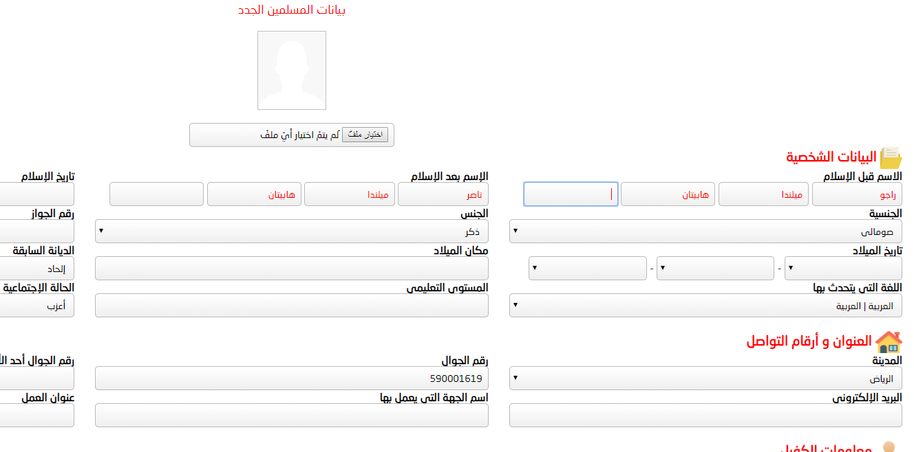 يسمح النظام برفع أي وثائق خاصة بالمسلمين الجدد دون الحاجة لزيارة المكتب