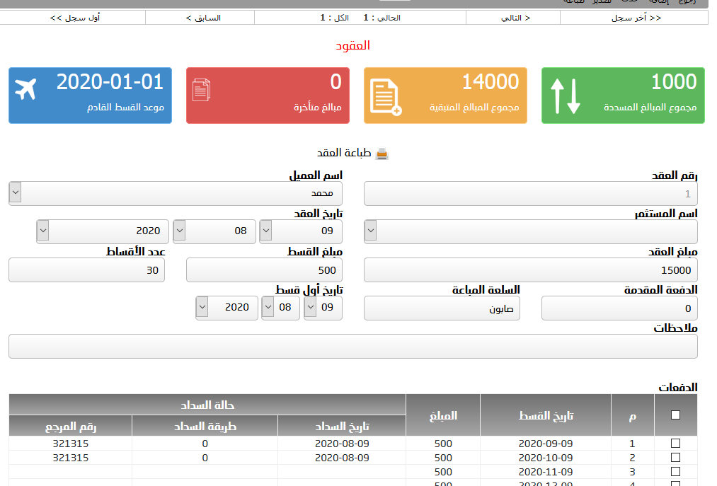نظام إلكتروني يمكن من خلال إضافة العقود ومتابعة ماتم سداده منها