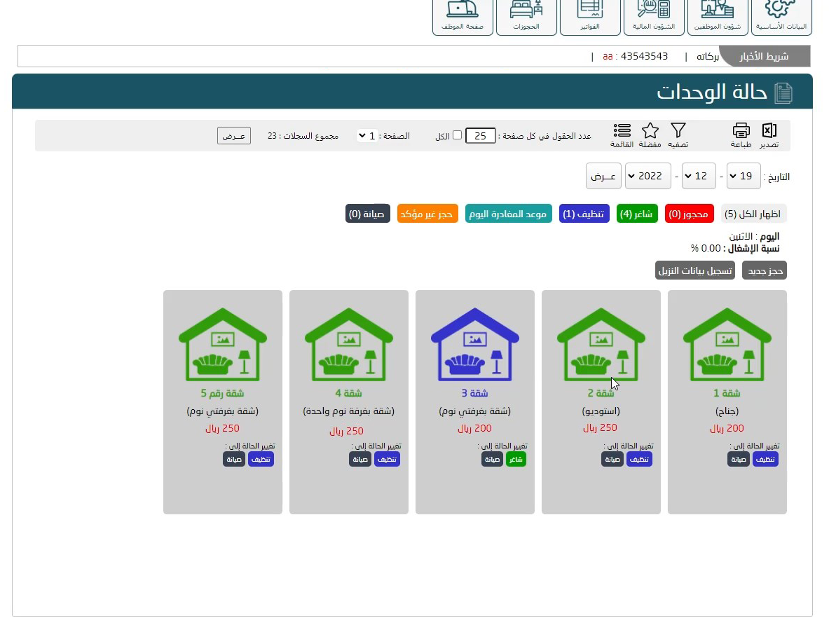 يتيح لك النظام التأجير و معرفة الشاغر مع إمكانية حجز الغرف عند الرغبة